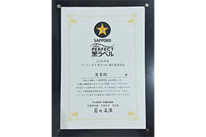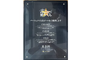 当店は、3年間にわたる品質チェックを経て、 徹底した清掃管理が認められた「パーフェクト黒ラベル協力店」です。グラスやサーバーを常に清潔に保ち、 サッポロビールが認めた最高品質の一杯をお届けしています。泡、温度、喉ごし、そのすべてが“完璧”な黒ラベルをぜひご堪能ください。